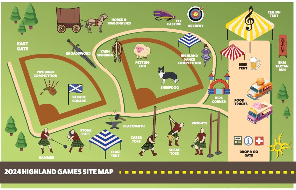 Below is the schedule from the 2025 Greater Moncton Highland Games & Scottish Festival.