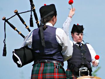 Individual piping & drumming competitions 9am-noon, band competitions 12:30-5pm, Massed Bands performance at the Closing Ceremonies.